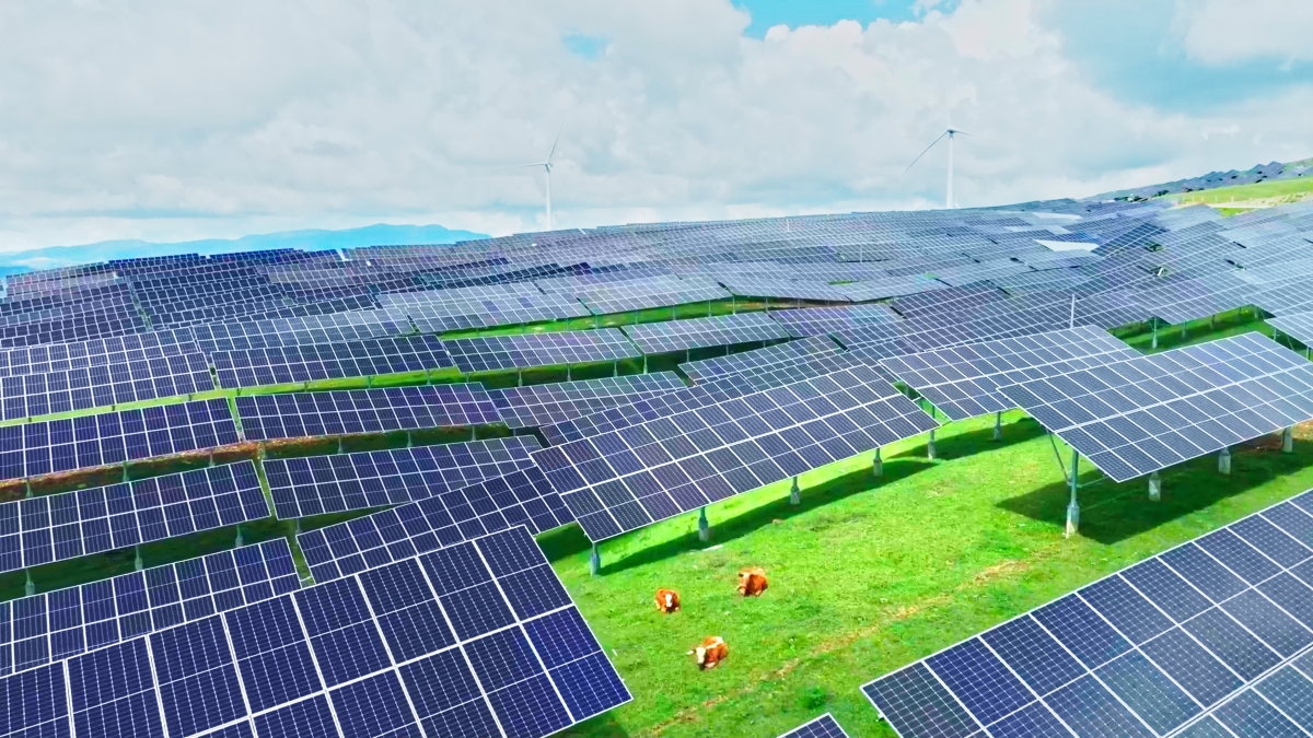 在會理布都光伏項目現場,光伏板柔性支架的采用讓光伏板能更好適應山地地形,且不影響山間吃草的牛羊。同時,面對山間疾風能更有韌性、更穩固,加高的光伏板讓前期難以布置光伏組件的區域得到更好利用,充分提升了山地利用效率。