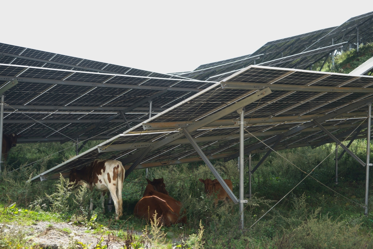 四川會理布都光伏電站光伏板下牛羊悠閑吃草?攝影:但棣瑤