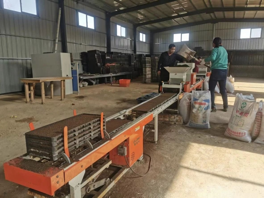 彈前鄉(xiāng)是贛南富硒水稻主產(chǎn)區(qū),但傳統(tǒng)育秧依賴人工,出苗率低、成本高,制約規(guī)模化種植。為解決這一問(wèn)題,2023年,三峽集團(tuán)在當(dāng)?shù)亟ㄔO(shè)了機(jī)械化育秧中心,建成437平方米鋼架育秧棚、暗化催芽室及智能生產(chǎn)線,配備秧盤播種流水線、移動(dòng)碎土機(jī)等設(shè)備,實(shí)現(xiàn)浸種、催芽、播種全流程機(jī)械化。